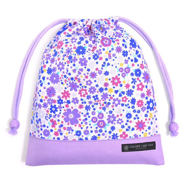 ¥1,692【10%OFF:クリスマスセール】 ゆうパケット対応 巾着 大 体操服袋(ネームタグ付き) 持ち手マチ付き 撥水ノーアイロン フローラルミスト