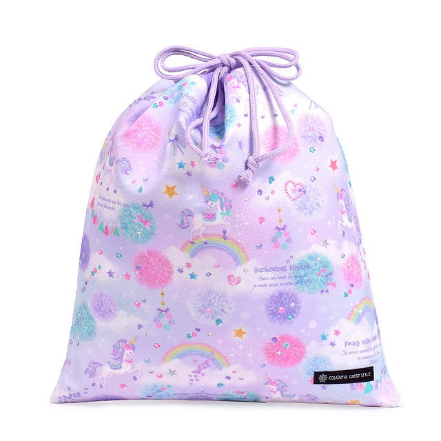 ¥1,935【25%OFF:クリスマスセール】 シューズケース キルティング(ネームタグ付き) 撥水タイプ ユニコーンファンタジー