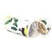 雫のような瑞々しい果実を実らせるラ・フランス。背景の白に、あざやかな葉の緑、ラ・フランスの黄色・橙色がとても爽やか。優しく、少しノスタルジックな雰囲気が魅力です。
