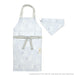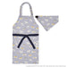 100-120cmサイズの子ども用エプロン。首ひもの長さをゴムで調節できます。丈の長さを子どもの身長に合わせられるので、長くご愛用いただけます。