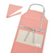 無地やモノトーンなどのベーシックな柄にシンプルなフォルムの腰ひもエプロン。中学・高校・大学の各種学校イベントから、日常のクッキング、お掃除やDIYまで幅広い用途で活躍します。