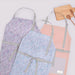 無地やモノトーンなどのベーシックな柄にシンプルなフォルムの腰ひもエプロン。中学・高校・大学の各種学校イベントから、日常のクッキング、お掃除やDIYまで幅広い用途で活躍します。