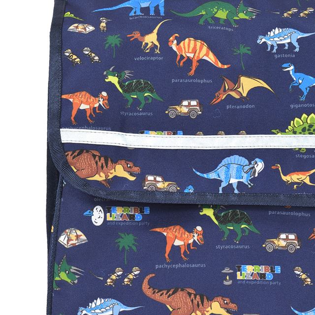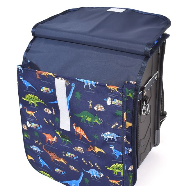 【30%OFF:クリスマスセール】 ランドセルカバー 撥水・軽量タイプ 反射材(リフレクター)・収納ポケット付き 発見!探検!恐竜大陸(ネイビー)