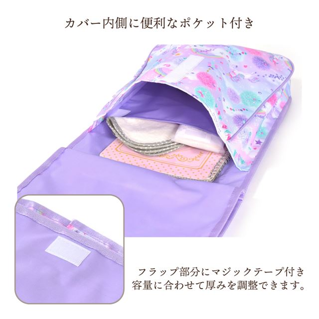 カバーの内側には、小物収納に便利なポケット付き。ハンカチやティッシュなどをすぐに取りだせます。