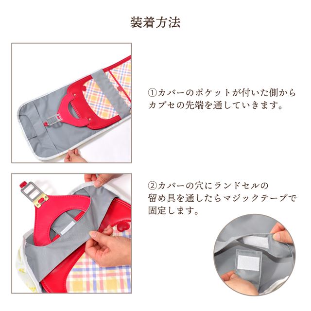 3.便利な収納ポケット付きランドセルカバー。ライトに反射して光る反射材付き
