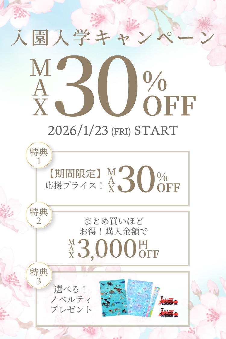 購入金額に応じて最大3,000円OFF!入園入学キャンペーン2026 開催中!