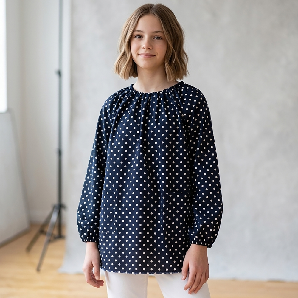 汚れを気にせず作業できる長袖タイプ。書道や美術、図画工作などの授業でも大活躍です。