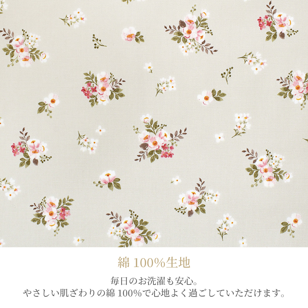 肌あたりのよい綿100%生地で、毎日を心地よく。お洗濯もしやすく、清潔に使えます。