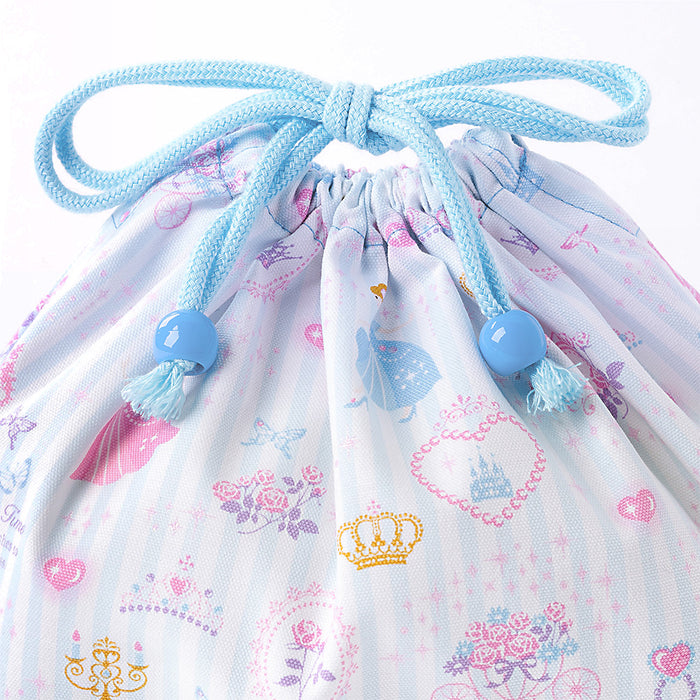【30%OFF:クリスマスセール】 ゆうパケット対応 巾着 中 マチ有りお弁当袋(ネームタグ付き) プリンセスドレスで彩るパウダールーム(ストライプ)