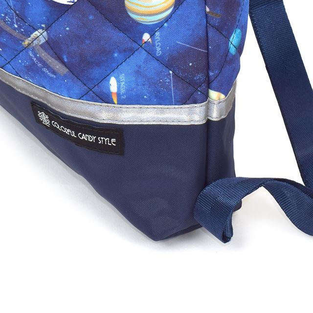 【10%OFF:クリスマスセール】 ナップサック キルティング マチ付き リフレクター付き 撥水ノーアイロン 未来の惑星探査と宇宙船