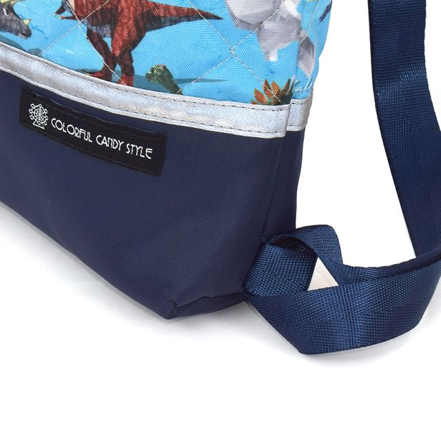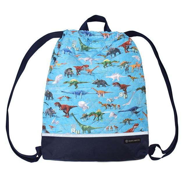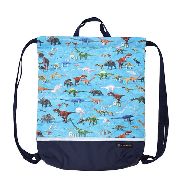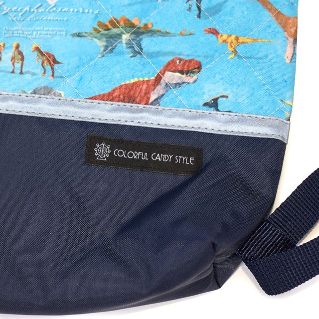 【10%OFF:クリスマスセール】 ナップサック キルティング マチ付き リフレクター付き 撥水ノーアイロン 恐竜ワールド