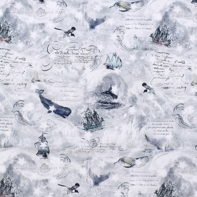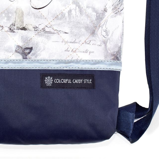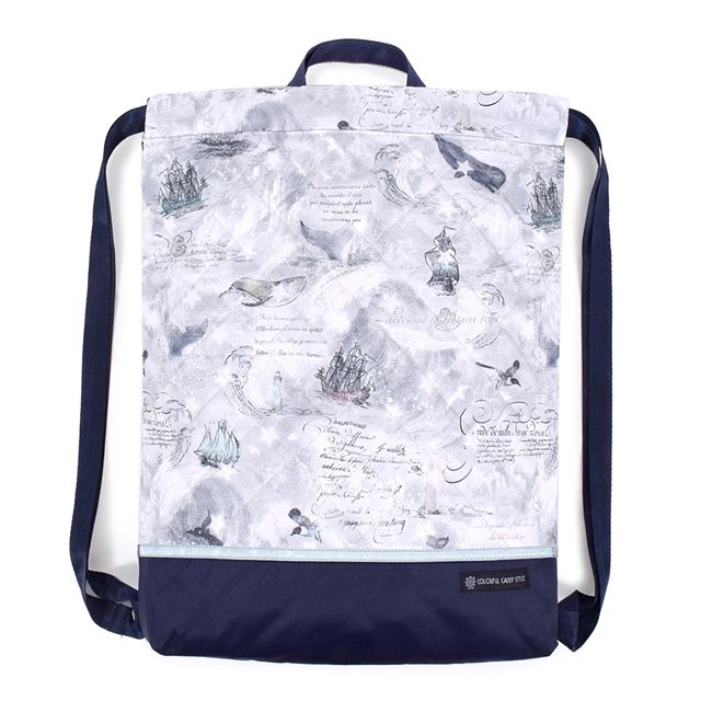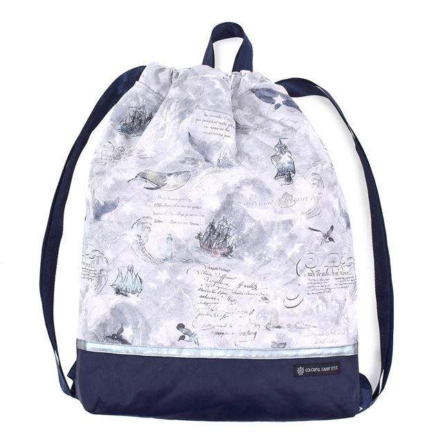【20%OFF:クリスマスセール】 ナップサック キルティング マチ付き リフレクター付き 撥水ノーアイロン クジラと航海日誌